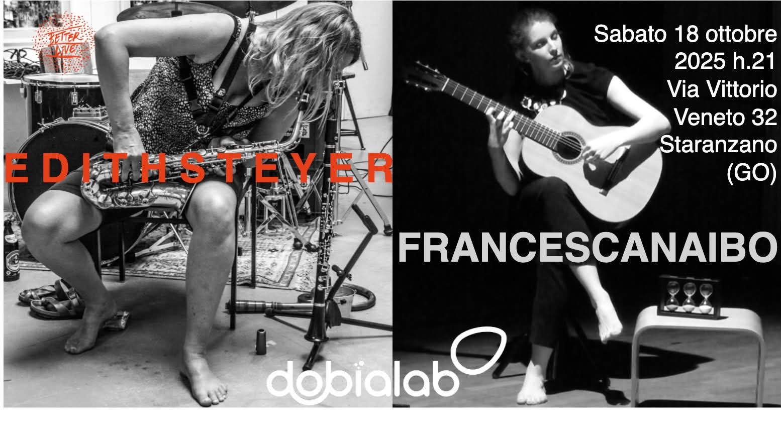 Sabato 18 ottobre – h 21.30 – DobiaLab (Via Vittorio Veneto, 32, Staranzano) EDITH STEYER & FRANCESCA NAIBO (Sassofono & chitarra) SMITHSONIAN FOLKWAYS, in cammino sulle Folkways (Presentazione) Cosa aspettarsi Better Live è un progetto internazionale che durerà fino all’agosto 2026 e che si impegna per una circolazione sostenibile dei musicisti in Europa, tenendo conto … Read moreTorna BETTER LIVE a DobiaLab!